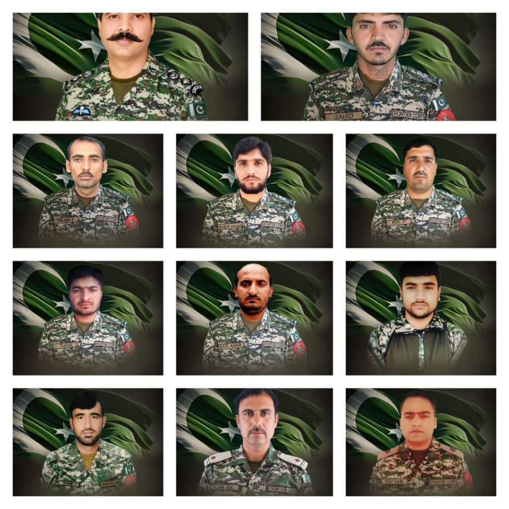 The nine brave soldiers who paid the ultimate sacrifice include Naib Subedar Azam Gul (age: 38 years, resident of District Khyber), Naik Adil Hussain (age: 35 years, resident of District Kurram), Naik Gul Ameer (age: 34 years, resident of District Tank), Lance Naik Sher Khan (age: 31 years, resident of District Mardan), Lance Naik Talish Faraz (age: 32 years, resident of District Manshera), Lance Naik Irshad Hussain (age: 32 years, resident of District Kurram), Sepoy Tufail Khan (age: 28 years, resident of District Malakand), Sepoy Aqib Ali (age: 23 years, resident of District Swabi), Sepoy Muhammad Zahid (age: 24 years, resident of District Tank).