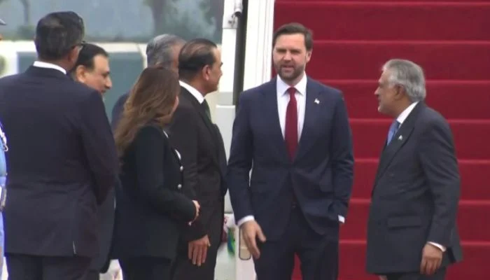 Deputy Prime Minister Ishaq Dar and Pakistan’s Chief of Defence Forces and Army Chief, Field Marshal Syed Asim Munir, received the US vice president upon his arrival in the capital.